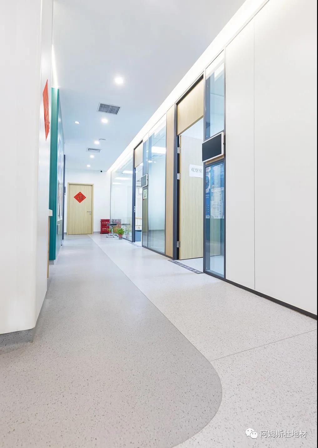 在該項目地墻材的使用選擇中,阿姆斯壯推薦了崮墻龍、典雅龍等系列產(chǎn)品。這些產(chǎn)品均具有“易于清潔且耐刮擦、抗菌”等優(yōu)異功能,同時利用大顆粒紋理以水刀切割的方式組合成不同形狀,以灰色系為主調(diào),更好的與室內(nèi)環(huán)境融合,柔和的色調(diào)為醫(yī)院營造出溫馨感,提升醫(yī)院形象,使整個空間更富有設(shè)計感。